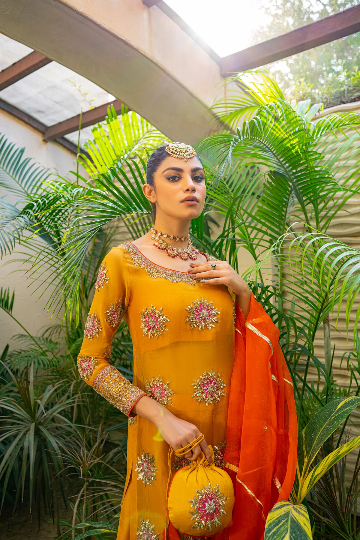 Fabric: Raw Silk Shirt - Raw Silk Sharara - Organza Dupatta